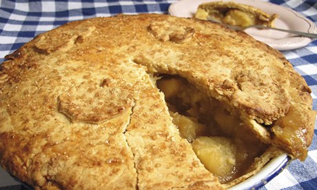 Boggiano, Day-Lewis and Wareing all encase their pies in pastry, while Grigson and White only deploy a pastry lid. This seems like cheating to me: a proper apple pie should be free-standing if required. That said, give the bottom a fighting chance at crispness by doing as Day-Lewis suggests, and sprinkling the pastry with flour and sugar before adding the fruit. Saveur magazine informs me that, as the filling cooks, "this extra layer will protect the pie dough from absorbing too much moisture".
